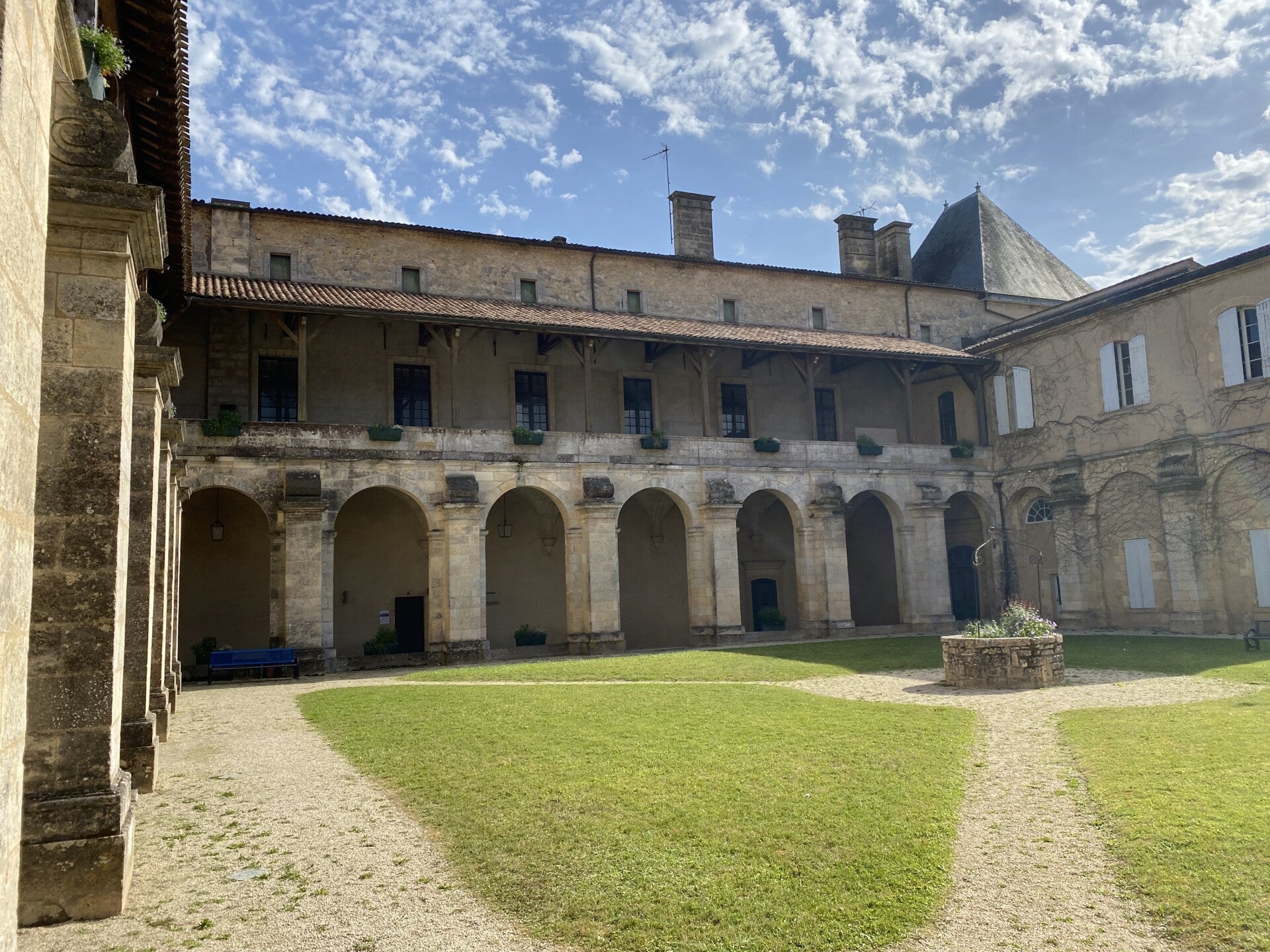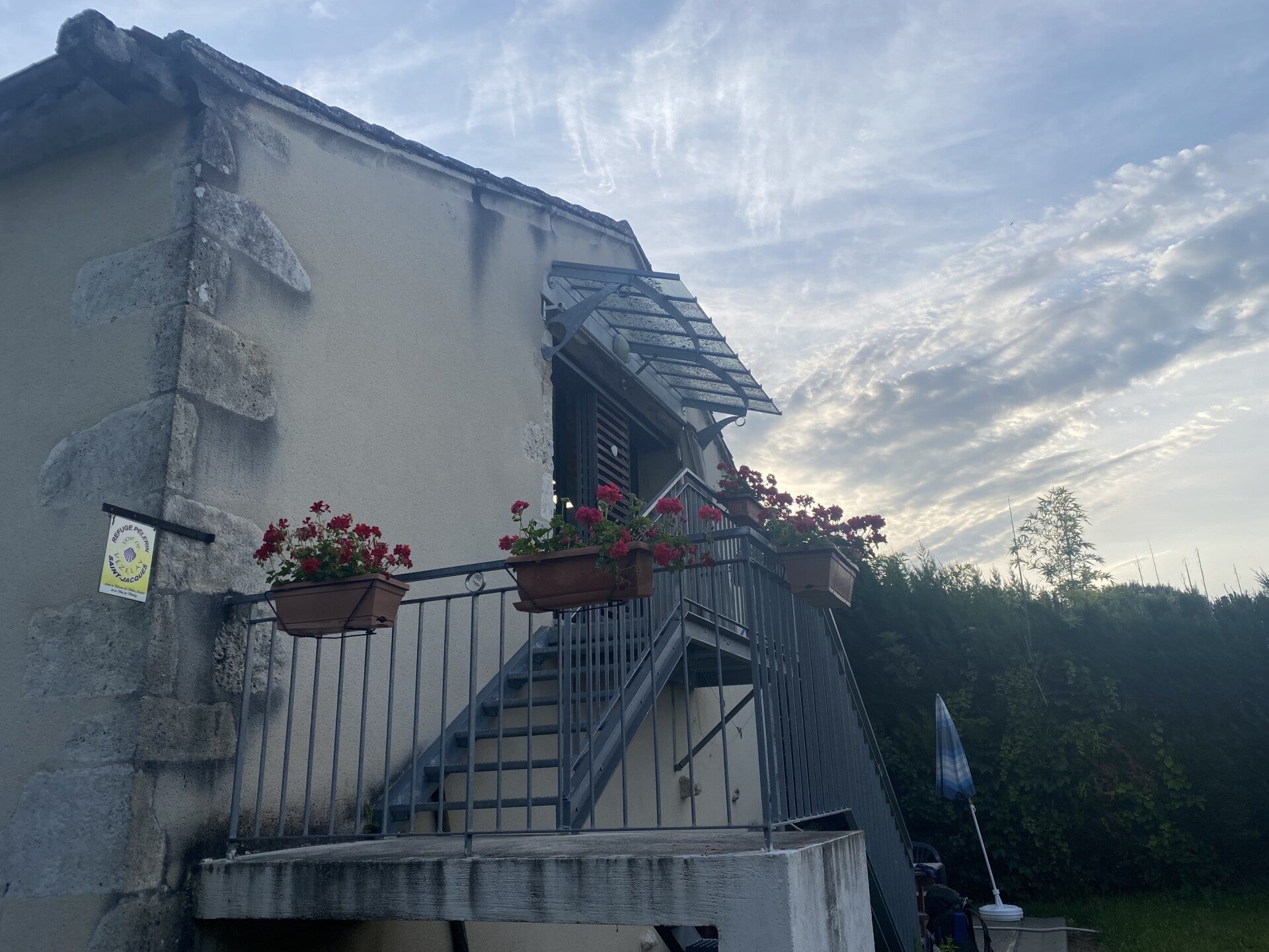 0545hr en de eerste wekker loopt al af. Wat is dat toch allemaal met zo vroeg te willen vertrekken 🧐. Ik draai mij nog ne keer om maar om 0630hr besluit ook ik om mijn nestje te verlaten. Jean Michel, de Fransman, die staat al klaar in zijn startblokken. Hij zwaait nog eens met zijne stok, en weg is hij. Samen met de hospitaliers en het koppel Nederlanders, die kort nadien ook het hazenpad nemen, ontbijt ik. Ik installeer mij buiten op een stoel en maak mijn verslag van gisteren verder af en doe nog een videocall of twee. Het is reeds 0930hr als ik afscheid neem van Chantal en Francis en mij richting de kerk van Saint Ferme begeef. Blijkbaar is daar een mooi glasraam te bewonderen dat weergeeft hoe benedictpaters de voeten van pelgrims wassen. Ze mogen die van mij ook ne keer soigneren zenne 🤪. Het zijn vandaag terug verkiezingen in Frankrijk. Niet voor een nieuwe president, dat was ergens in april, maar voor een nieuwe regering. Ik maak een praatje met de mensen die de verkiezingen in goede banen moeten leiden en die zich net hadden geïnstalleerd voor dat fameuze glasraam. Ik neem een foto .. en weg ben ik. Ik ben nog maar juist vertrokken of ik maak kennis met de 28-jarige collega pelgrim Raphaël uit Parijs. Ik zal de hele voormiddag, samen met hem, doorheen alweer verschillende wijngaarden lopen. In 'Couters' steken we de rivier 'le Drot' over en lopen verder tot in 'Roquebrune' waar ik hem achterlaat daar hij het al nodig vindt om te eten en ik nog nie😉. Ik wens hem een 'bonne chemin' en weg ben ik. Ik stap in één ruk door tot in La Réole waar ik omstreeks 1430hr aanklop bij Julien in zijn één maand oude dortoir. Ik blijk de enige bezoeker te zijn ... dus een hele grote kamer voor mij alleen. Hij biedt mij een glaasje wijn aan en, samen met zijn vriendin Eve, drink ik mijn glaasje leeg. Een heel aangename gast die Julien die mij de nodige uitleg geeft over die 1000-jarige oude stad. Hij doet ook mijne was in zijn machine ... Gemakkelijk dat dat is 👍.
