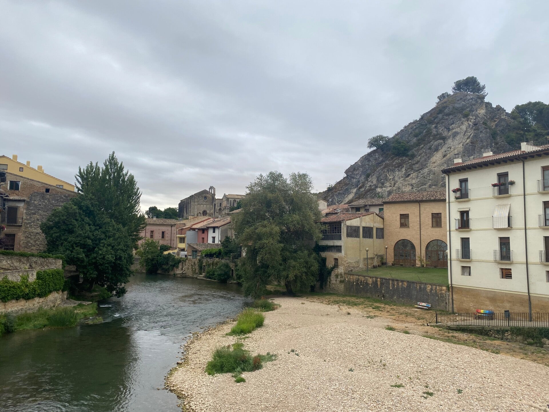 Goed uitgeslapen en fit opgestaan daar in dat super hostel ... Sober maar lekker ontbeten en we kunnen er terug tegenaan om een dagje te stappen in Spaans Baskenland richting Los Arcos. Dit is de plaats waar het Vlaams Compostelagenootschap de refuge Muncipal uitbaat👍. Ik verlaat Estella via een relatief drukke weg en vrij snel kom ik aan in Ayegui, een alweer iconische plaats op weg naar Compostela, waar zich de 'wine fontain' bevindt. Deze wijnfontein behoort toe aan 'bodegas de Irache', opgericht in 1891 en gecreëerd om de vermoeide pelgrim te motiveren om door te gaan. En moe dat ik was😝. Het is de bedoeling dat je met uw schelp een paar teugen wijn binnenwerkt, wat ik dan ook met volle overtuiging heb gedaan. Na dit leuke intermezzo stap ik de nabijgelegen smederij binnen waar de smid een heel arsenaal aan leuke pelgrims-attributen maakt. Ik koop mij een mooi handgemaakt schelpje met het tempeliers embleem in verwerkt 👍.