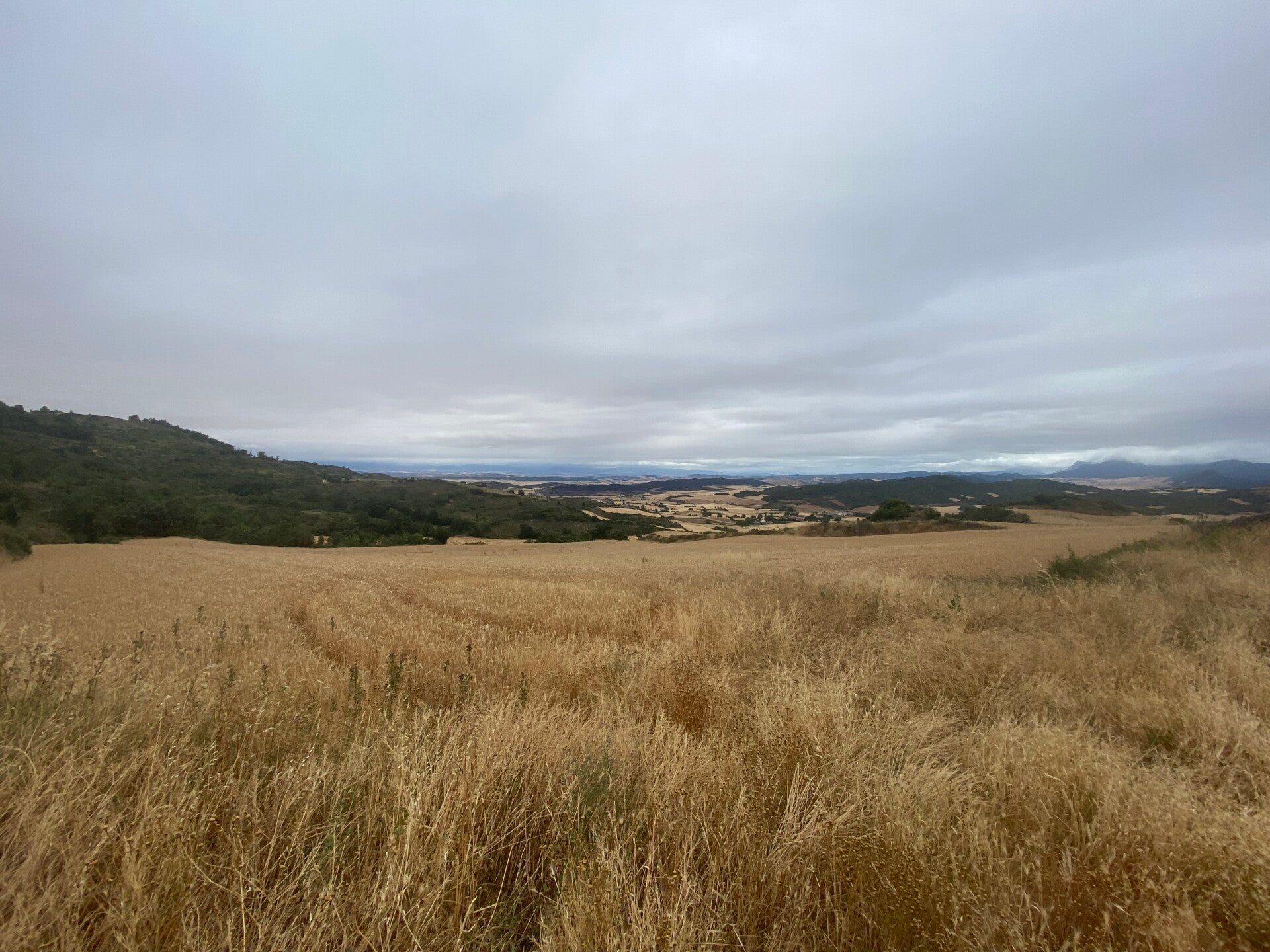 Het is mooi wandelen daar in de heuvels en al pratend dansen we de ene heuvel na de andere over. Ik kom ergens onderweg ook nog mijne tweede Belg 'op weg' tegen zijnde Nick uit Westmalle. Toffe ontmoeting en plezant om nog eens in uw eigen taal te kunnen praten. Op een bepaalde heuveltop beslist Taylor om een beetje met zijne 'drone', hij meeheeft, te spelen. Ik zet dapper door naar het volgend dorpje Luquin waar ik aan de 'piscina municapal’ halt hou voor het eten van een lekkere tortilla met 'café americano'. Na mijn buikje, of wat er nog van overblijft, vol gegeten te hebben zet ik mijn weg verder en het valt op hoe verwoestend de bosbranden van de afgelopen dagen hier hebben huis gehouden. Gigantisch grote lappen stukken grond liggen er troosteloos en zwart geblakerd bij. Tot vorig weekend was dit hier een 'no go' zone voor wandelaars. Ik heb dus geluk dat ik er terug door kan. Na een aantal kilometers kom ik aan in Los Arcos en aangezien ik niets heb gereserveerd stap ik de eerste Albergue 'La Fuente' binnen waar er nog plaats is. Na het betalen en installeren besef ik pas dat in Los Arcos de refuge Muncipal wordt uitgebaat door het Vlaams Compostela genootschap en ik mij geïnstalleerd heb in een ander oord. Hoe stom is da zeg 😣😣. Soit ... gedane zaken nemen geen keer ... en ik besluit om toch een goeiedag te gaan zeggen daar in Refuge 'Isaac’ van het Vlaams Compostela genootschap. Ik word daar hartelijk ontvangen door de 2 Hospitaliers Chris en Lieve. Er wordt onmiddellijk een flesje rosé gekraakt en den babbel is leuk. Nadien ga ik samen met Chris nog een restaurantje doen want den honger wordt te groot.