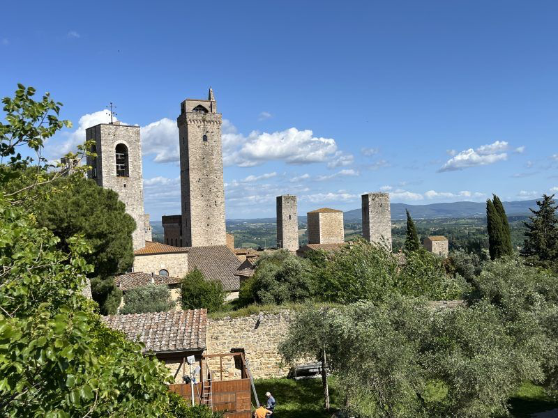 San Gimignano, de stad van torens, rijst als een middeleeuwse skyline op tussen de heuvels.