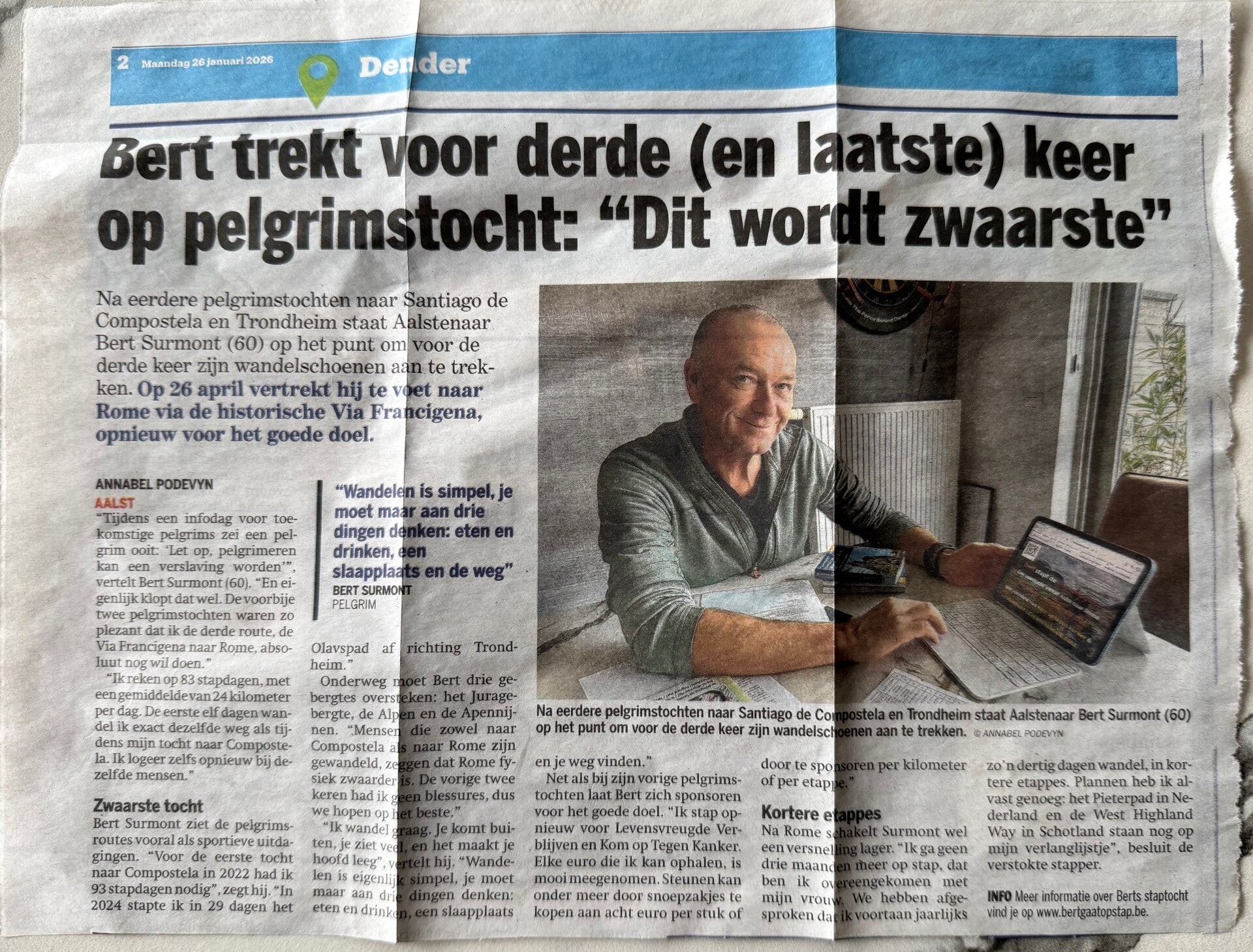 Duik in de 'MEDIA'-pagina van Bert gaat op stap, waar we met trots alle verschenen persartikelen en tv-reportages bundelen. Van digitale publicaties tot gedrukte verhalen en bewegende beelden, hier vind je alles wat over onze bijzondere avonturen is gezegd en getoond. Laat je verwonderen door de impact van onze tochten en ontdek hoe Bert op stap gaat door de ogen van de media. Deze pagina is speciaal voor onze volgers, om de grootsheid van de reis te delen en te inspireren.