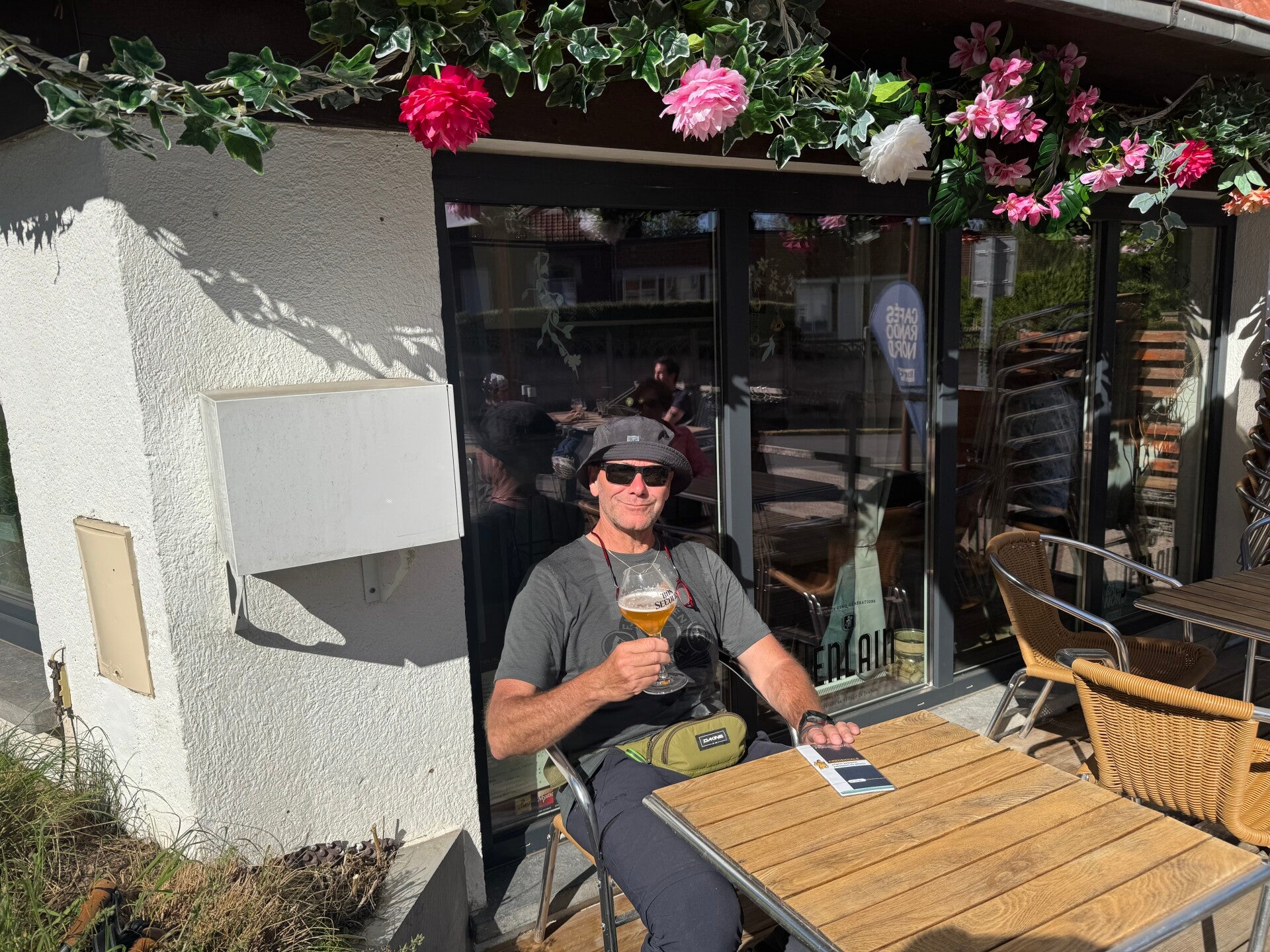 Vanaf hier gaat het in een rotvaart richting Sebourg, een charmant, rustig dorpje. Aan de kerk lonkt een gezellige brasserie met een uitnodigend terras. De verleiding wint. Ik plof neer op een stoel en geniet van een frisse “Bon Secours”. Santé!