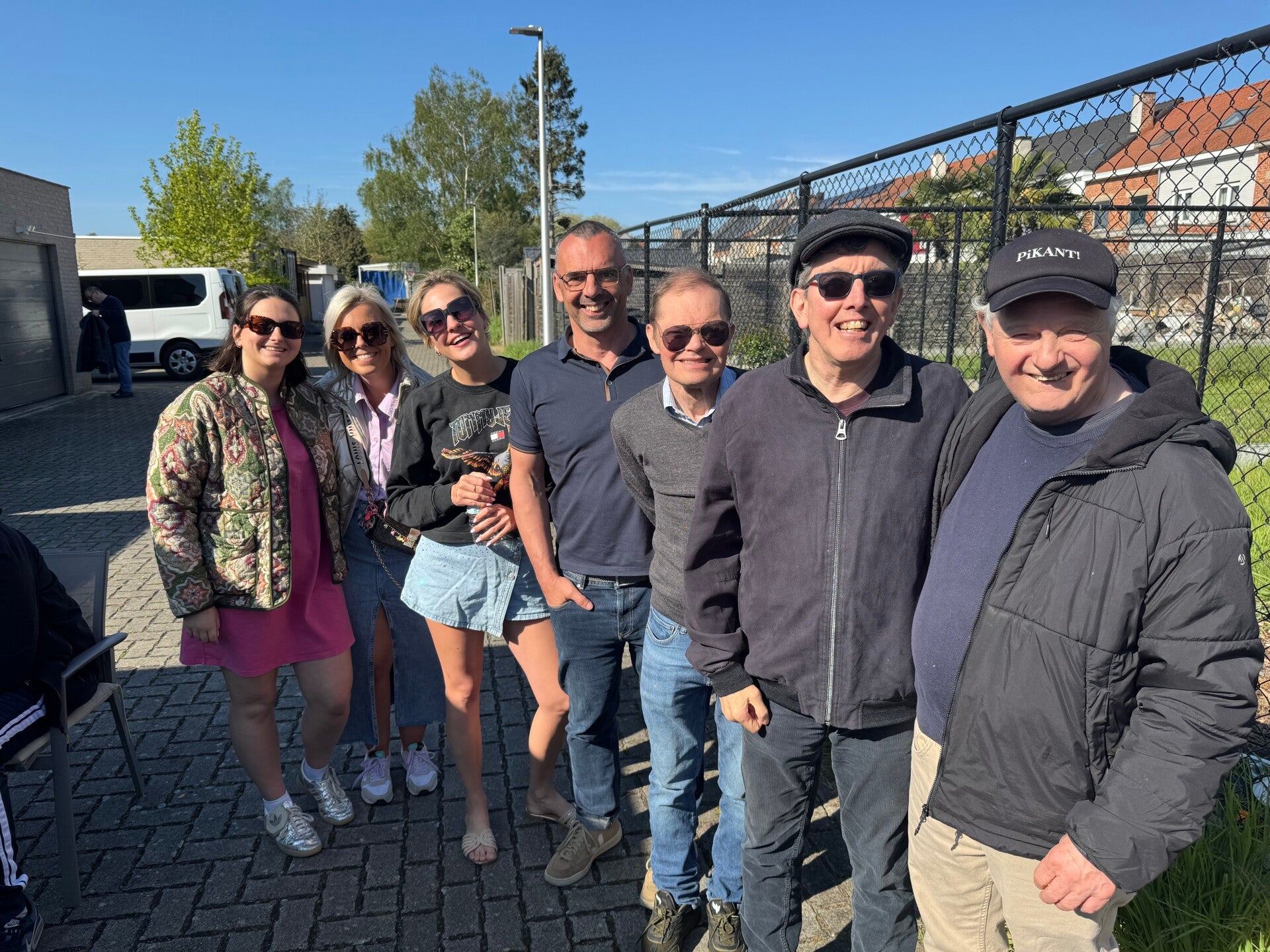 Meer dan 100 man op post. Echt ni normaal. Mijn liefste dochter Ymke daar… fier gelijk nen pauw. De hele bende van Wellin present. Een serieuze delegatie van Levensvreugde met Merel & Björn op kop. Darts Club Lebbeke City uiteraard ook van de partij. Mijne patron van Aventus Care. Marijke, voorzitter t van het Vlaams Compostela-genootschap. Caroline van KOTK. Pelgrimsmakkers Karim & Chris. Robbie den Viking… geburen, familie… allé , te veel om op te noemen.